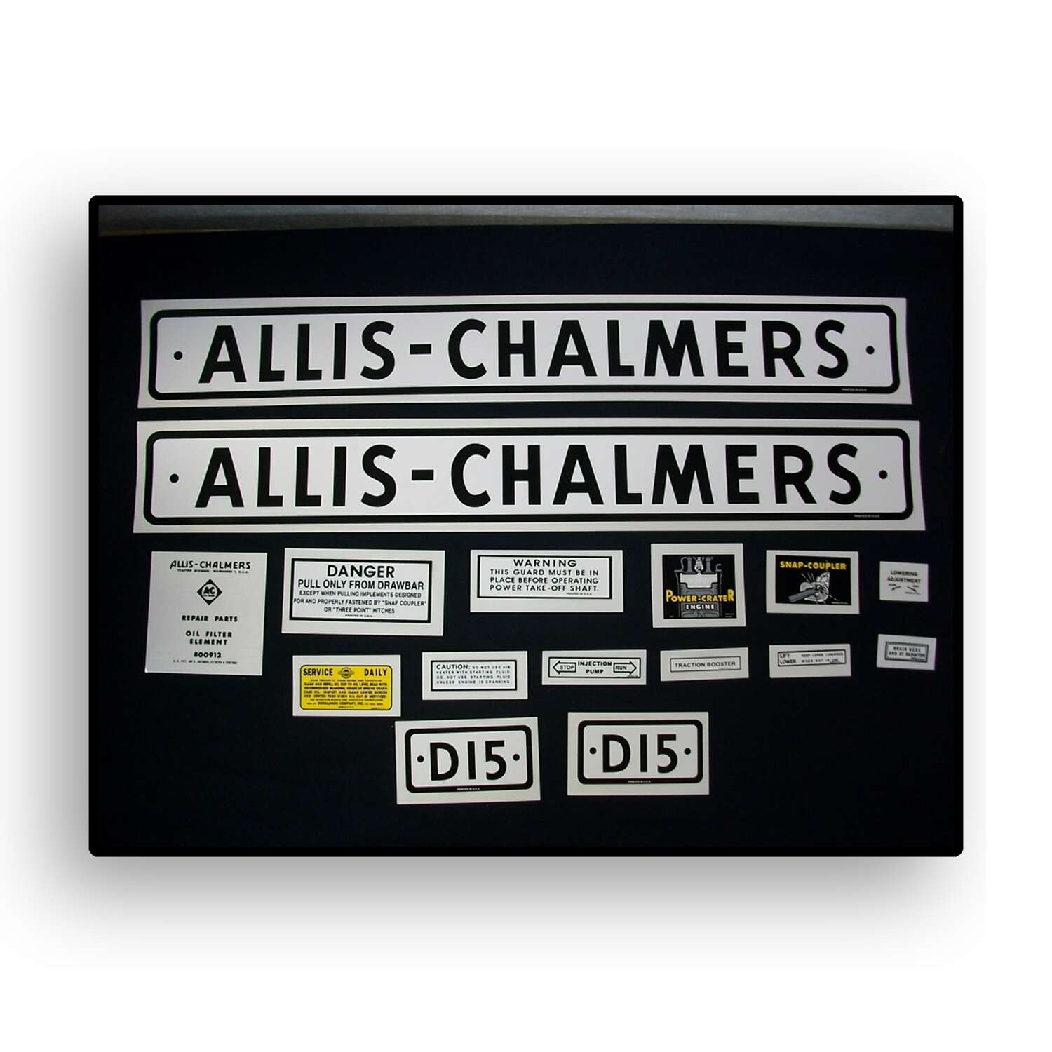 Allis Chalmers Model D15, 1957-60, Black Bar Grill Restoration Decal Set