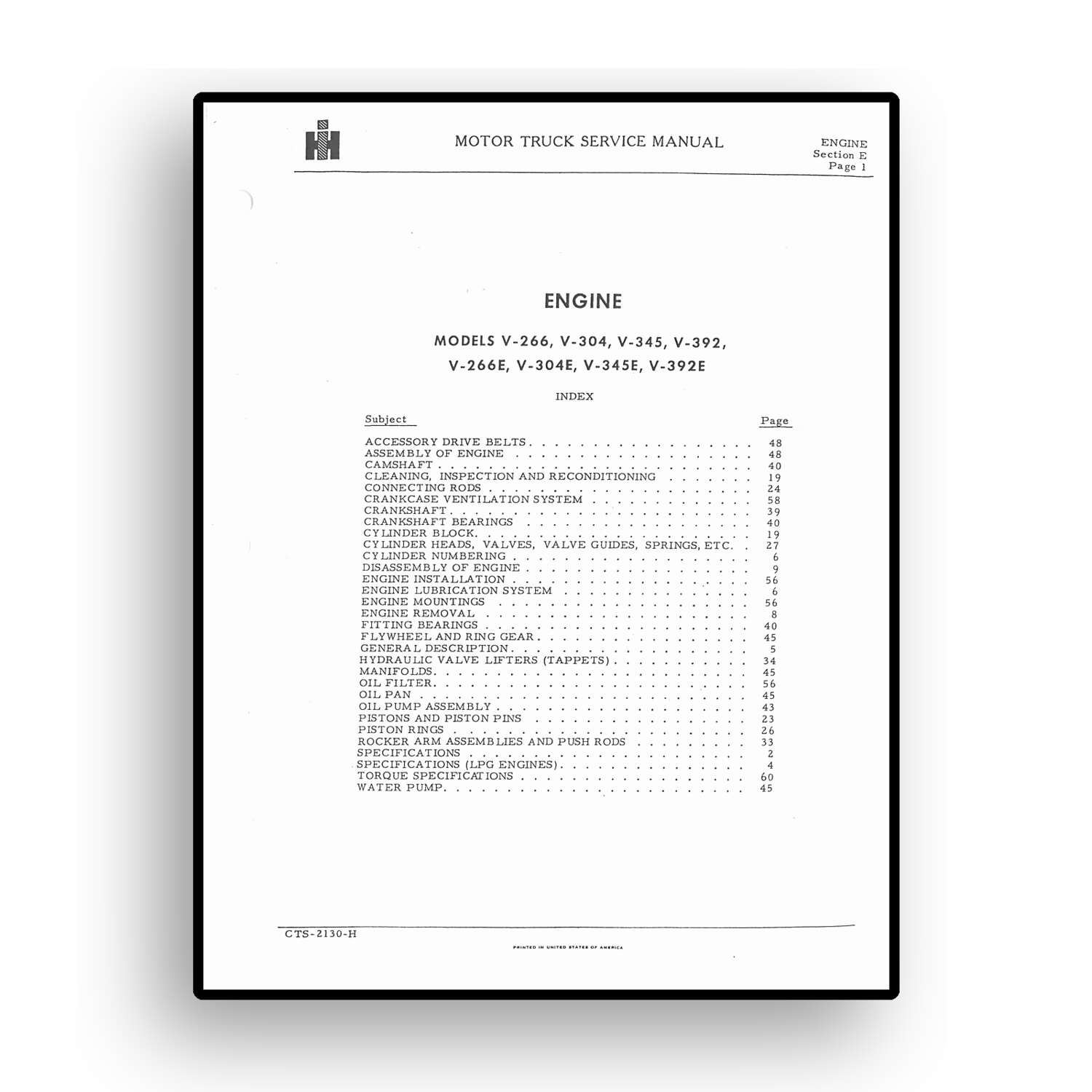 Engine Service Supplement for IH International Harvester V-266, V-304, V-345, V-392 Engine