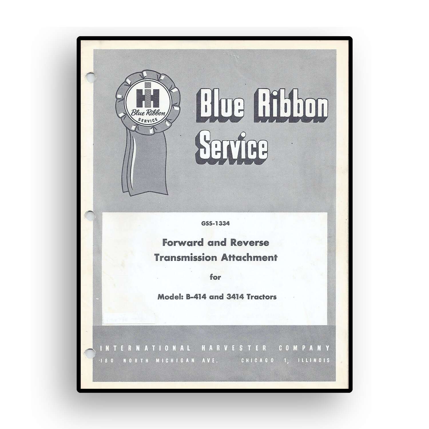 IH Blue Ribbon Service for Forward & Reverse Transmission Attachment for Model B-414 & 3414 Tractors