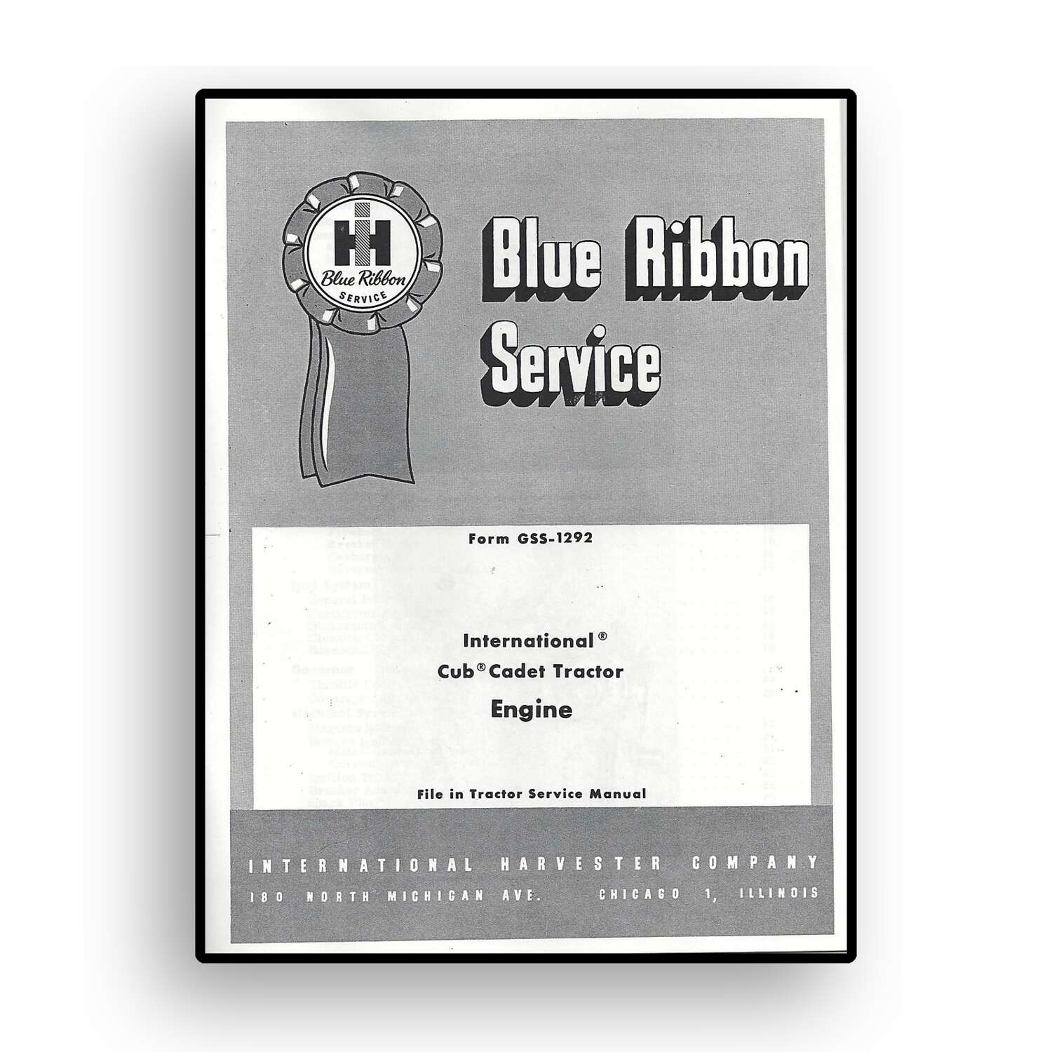 IH Blue Ribbon Service on Engine Service for Original Cub Cadet Tractors