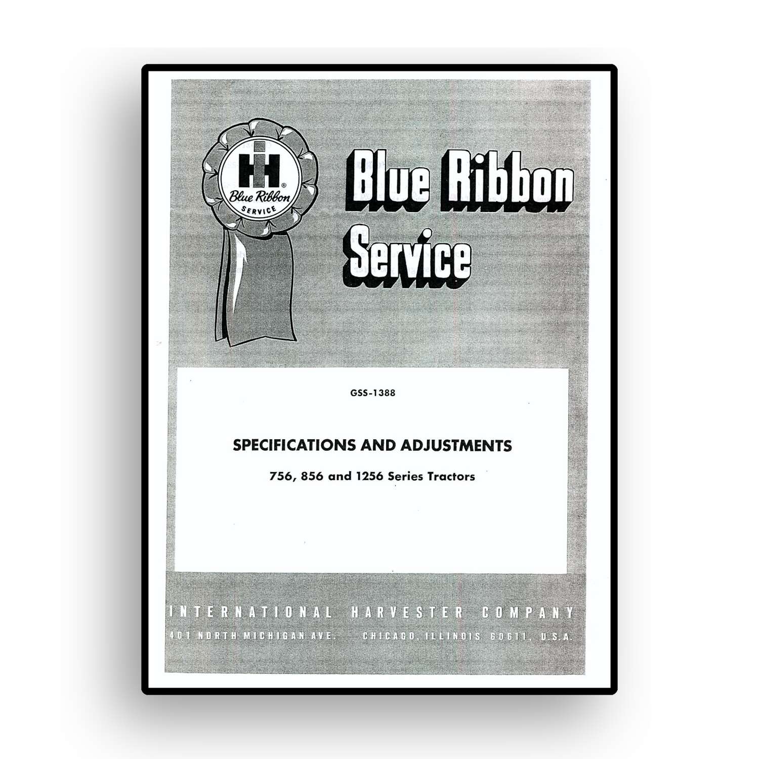 IH Blue Ribbon Service on Specifications and Adjusting Procedures for 756, 856 and 1256 Tractors