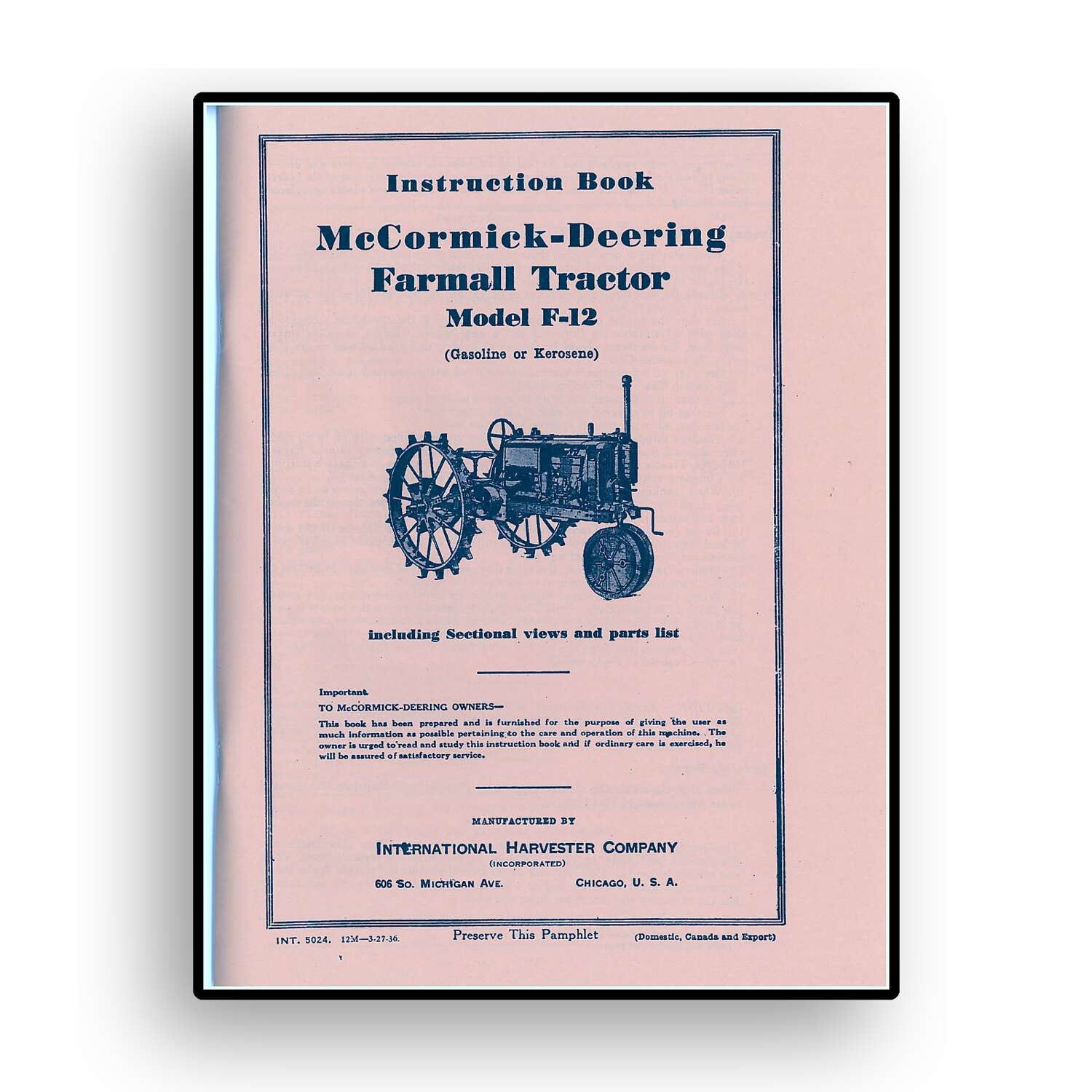 Instruction Book for McCormick-Deering Farmall F-12 Tractor