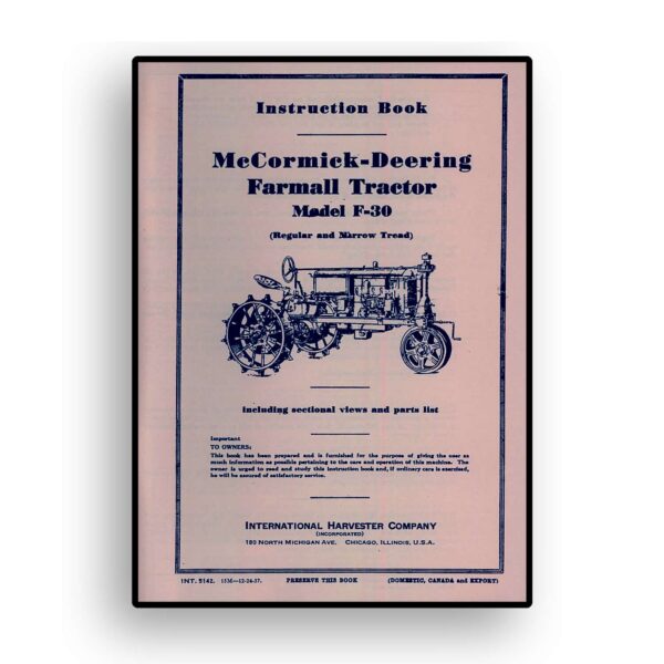 Instruction Book for McCormick-Deering Farmall Tractor Model F-30