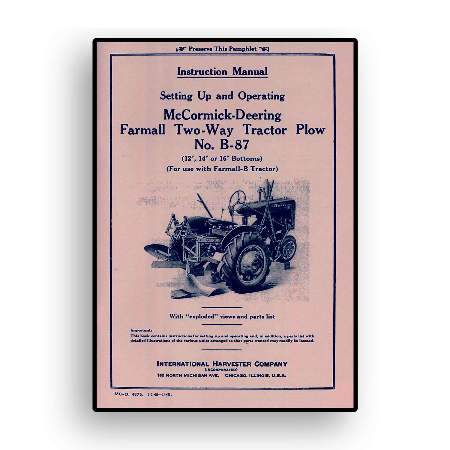 Unearth the Legacy: McCormick-Deering Farmall B-87 Two-Way Tractor Plow Manual