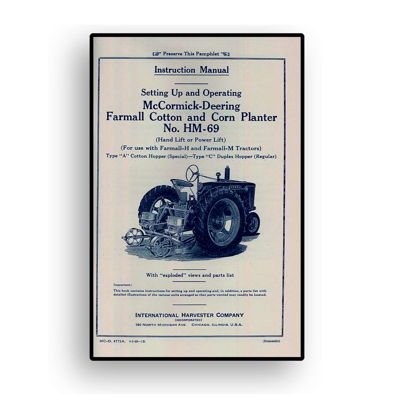 Unlock the Secrets of Restoration with the McCormick-Deering Farmall HM-69 Cotton and Corn Planter Manual