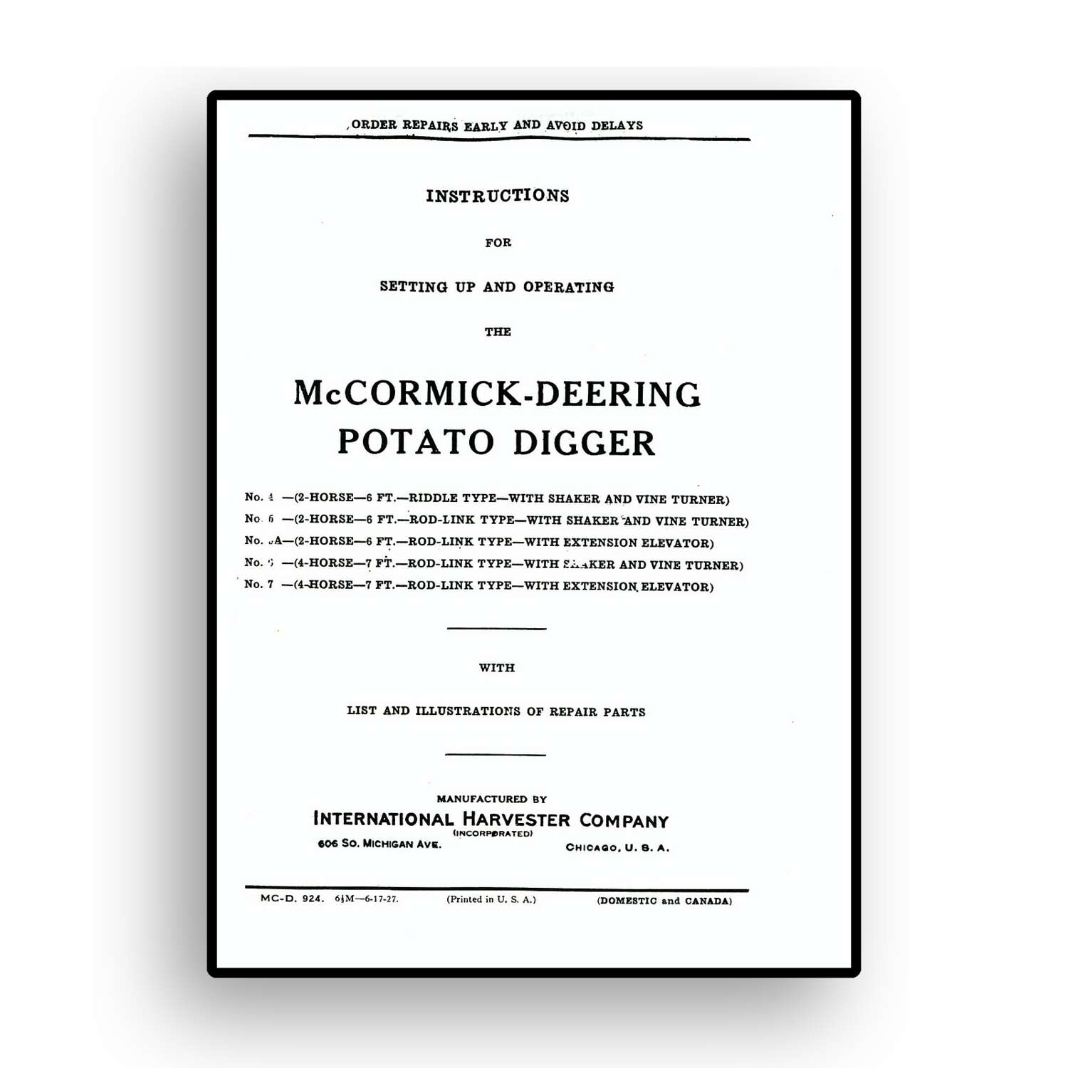 Instructions for Setting Up and Operating McCormick-Deering No. 4, 5, 5A, 6, & 7 Potato Digger