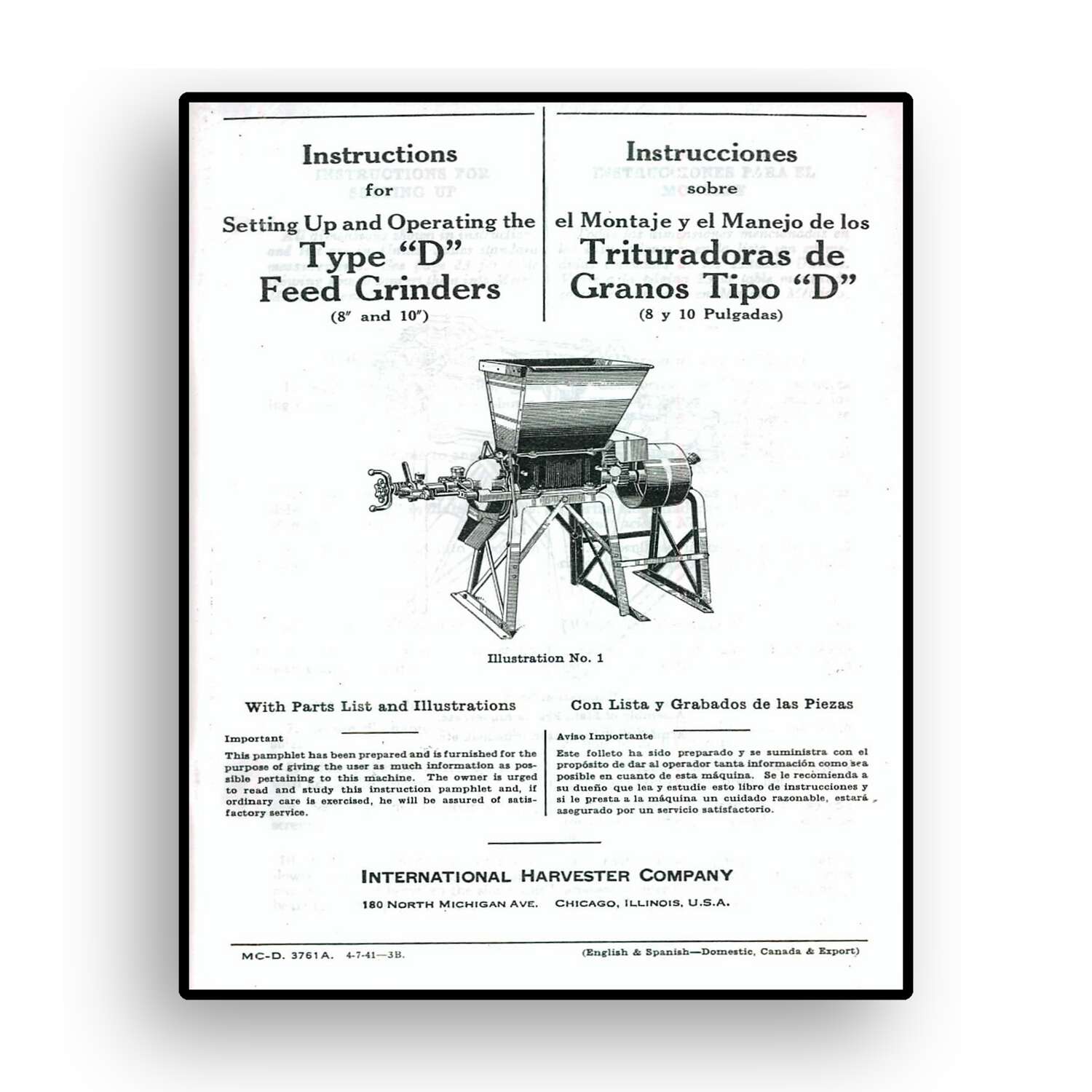 Instructions for Type D McCormick Deering 8″ and 10″ Feed Grinders