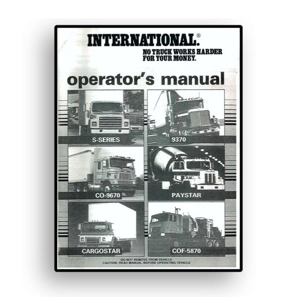 Are you a proud owner of classic machinery or a passionate restoration mechanic? If so, the Operator’s Manual for 1986 International S-Series, 9370, CO-9670, Paystar, Cargostar & COF-5870 Truck is an invaluable addition to your collection. This comprehensive manual is more than just pages filled with information; it’s a connection to the past, a treasure trove of technical wisdom that can aid in restoring and maintaining some of the most iconic trucks in history. Whether you’re tinkering in your garage or tackling a full restoration project, this manual provides the know-how you need to keep these vintage beasts running smoothly.