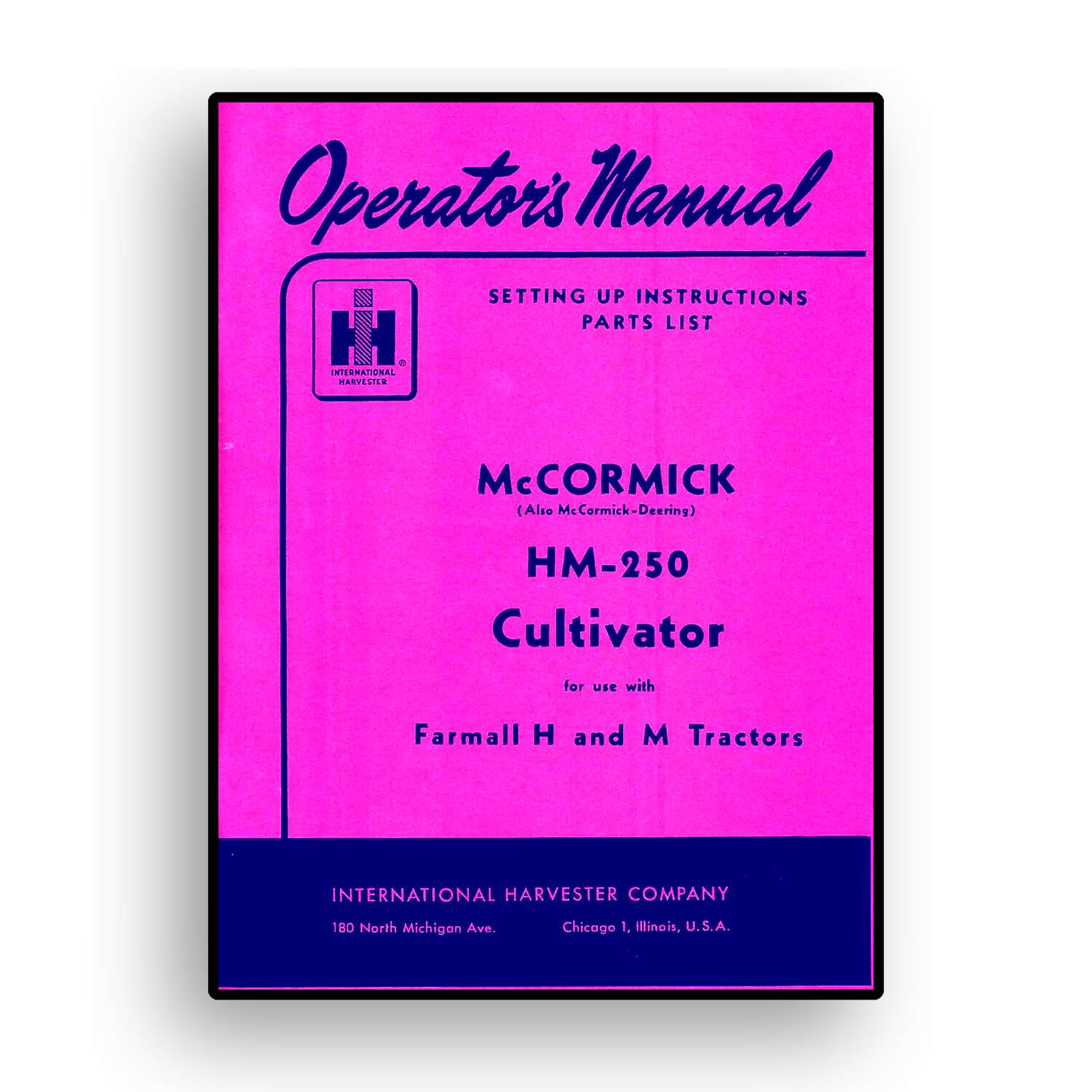 Operators Manual for HM-250 McCormick Cultivator Instructions with Parts List for Farmall H and M
