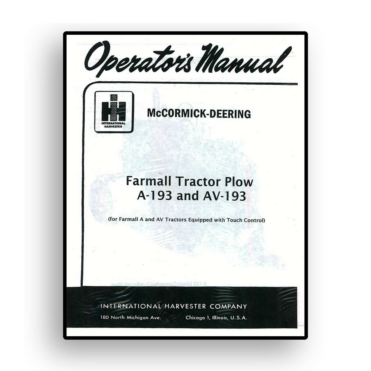Operators Manual for McCormick-Deering Farmall A-193 & AV-193 Tractor Plow