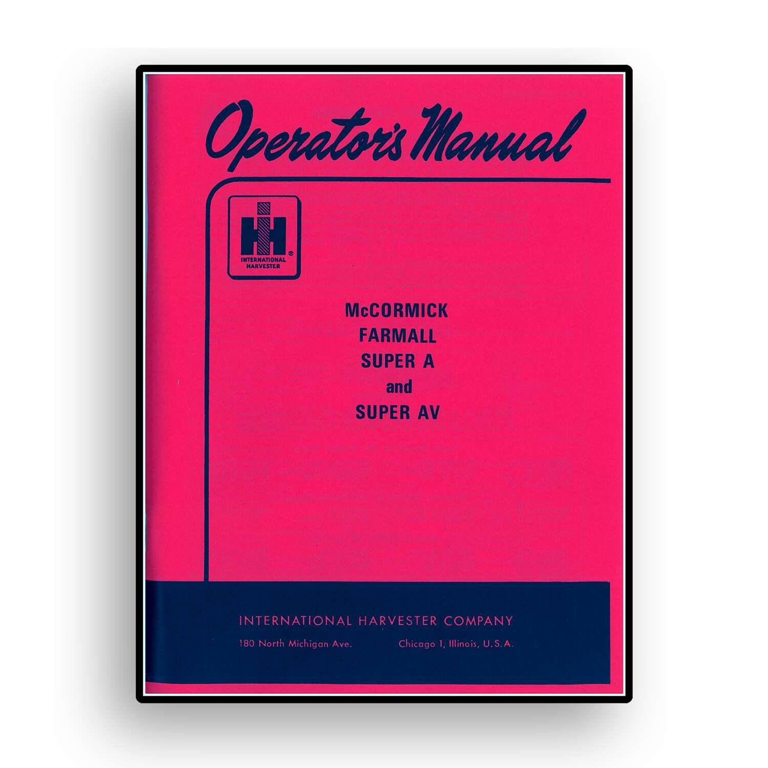 Operators Manual for McCormick Farmall Super A & Super AV Tractor