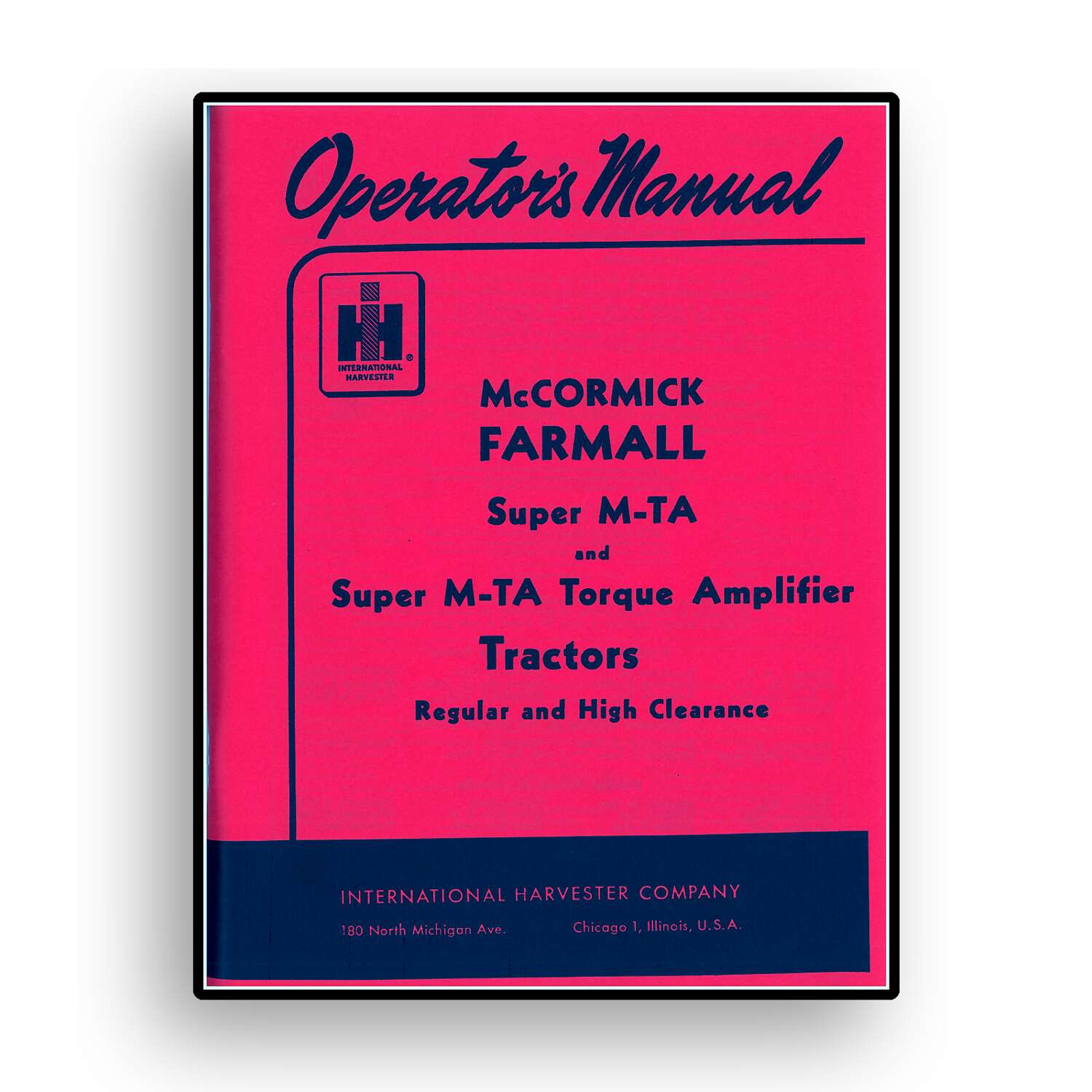 Operators Manual for McCormick Farmall Super M-TA Tractor