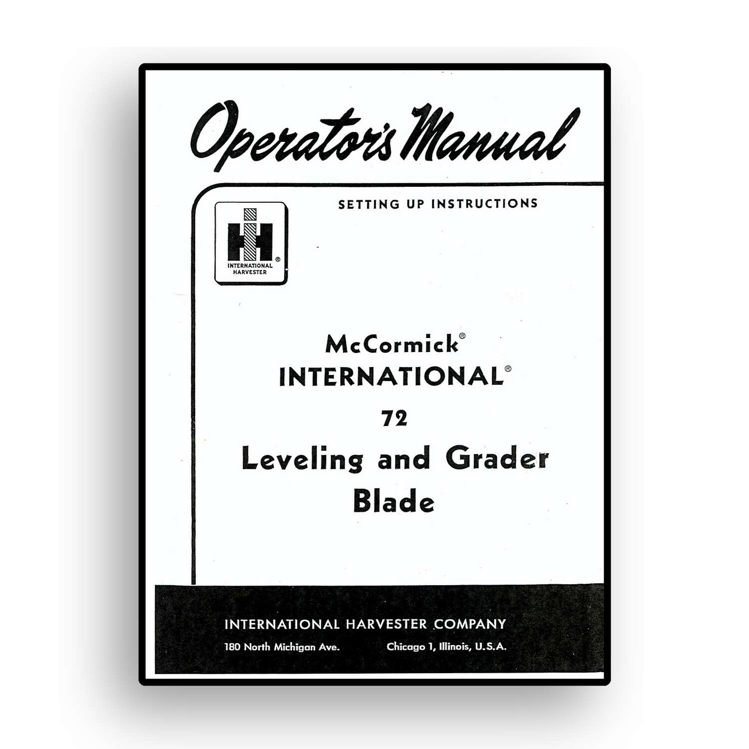 Operator’s Manual for McCormick International No. 72 Blade Used with 230, 240 & 404 Tractors