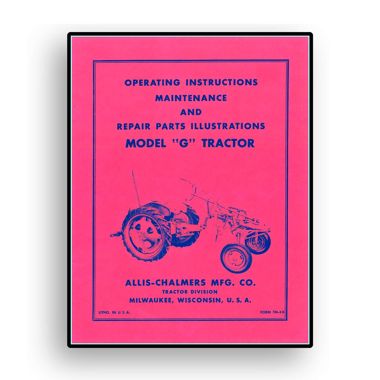 Operators Manual with Parts List for Allis-Chalmers Model G Tractor