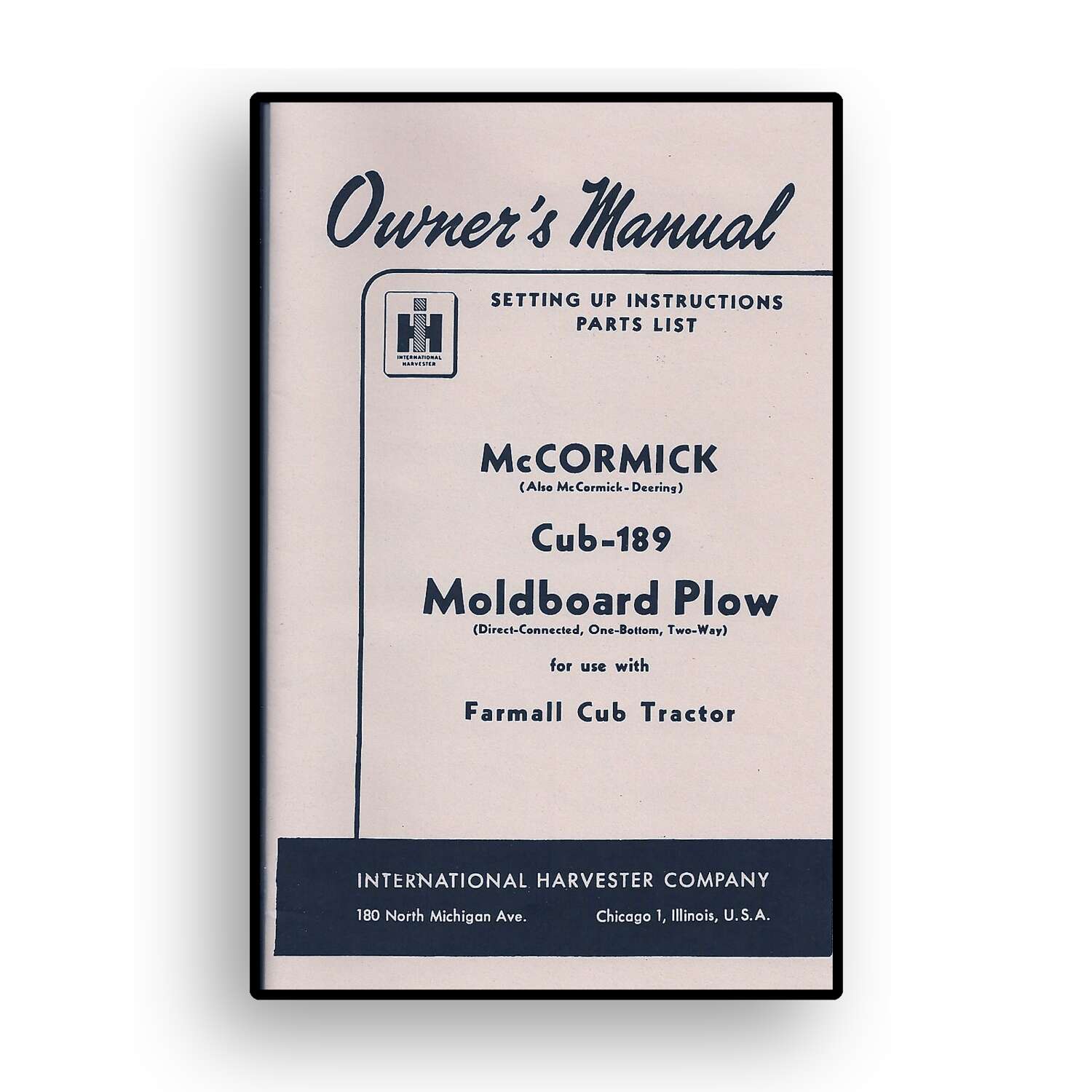 Owner’s Manual for McCormick Cub 189 Direct Connected, One Bottom, Two-Way Moldboard Plow