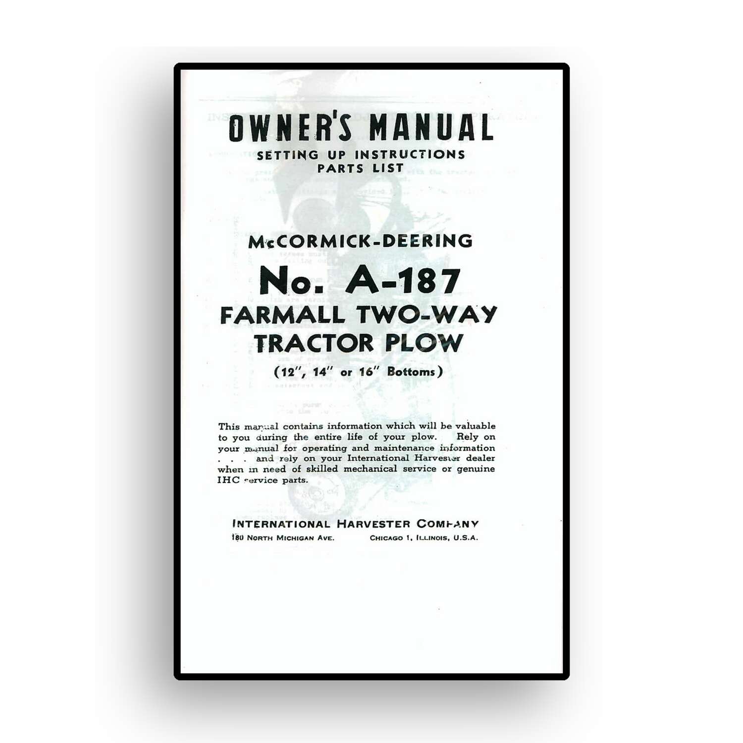 Owners Manual for McCormick-Deering A-187 Farmall Two-Way Tractor Plow