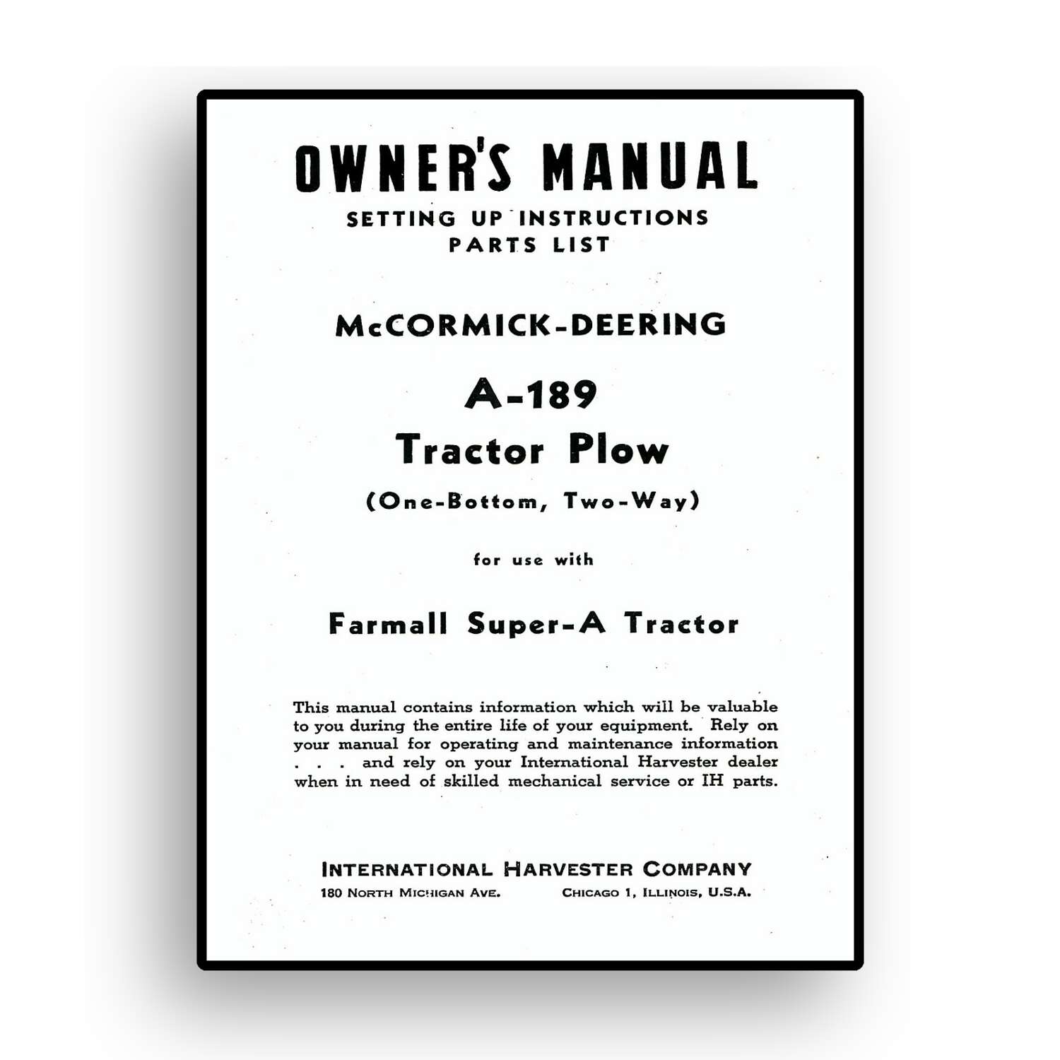 Owners Manual for McCormick-Deering A-189 Two-Way, One-Bottom Plow