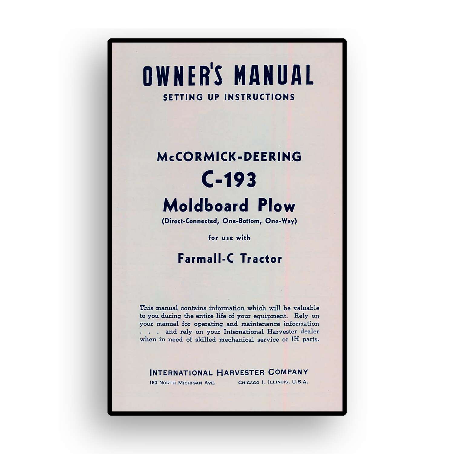 Owners Manual for McCormick-Deering C-193 One-Way, One Bottom Plow