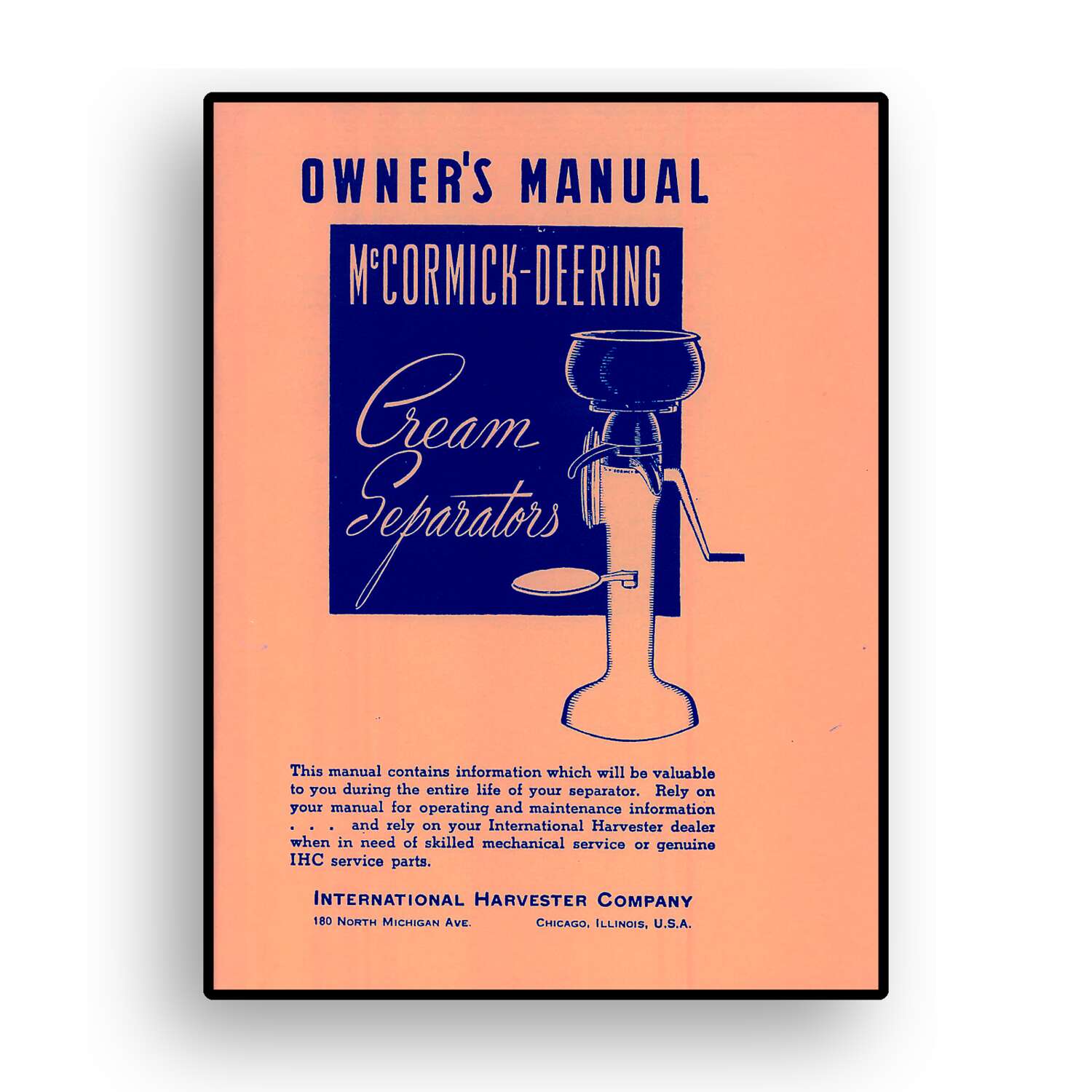 Owners Manual for McCormick-Deering Cream Separators with Electric or Pulley Drive