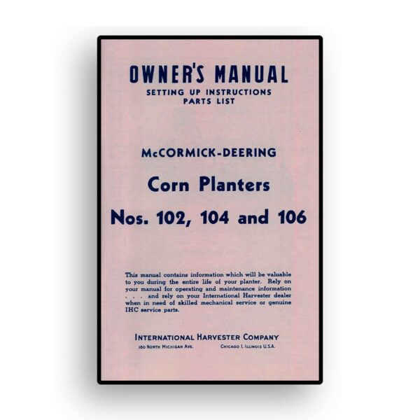 Owners Manual for McCormick-Deering No. 102, 104 & 106 Corn Planters