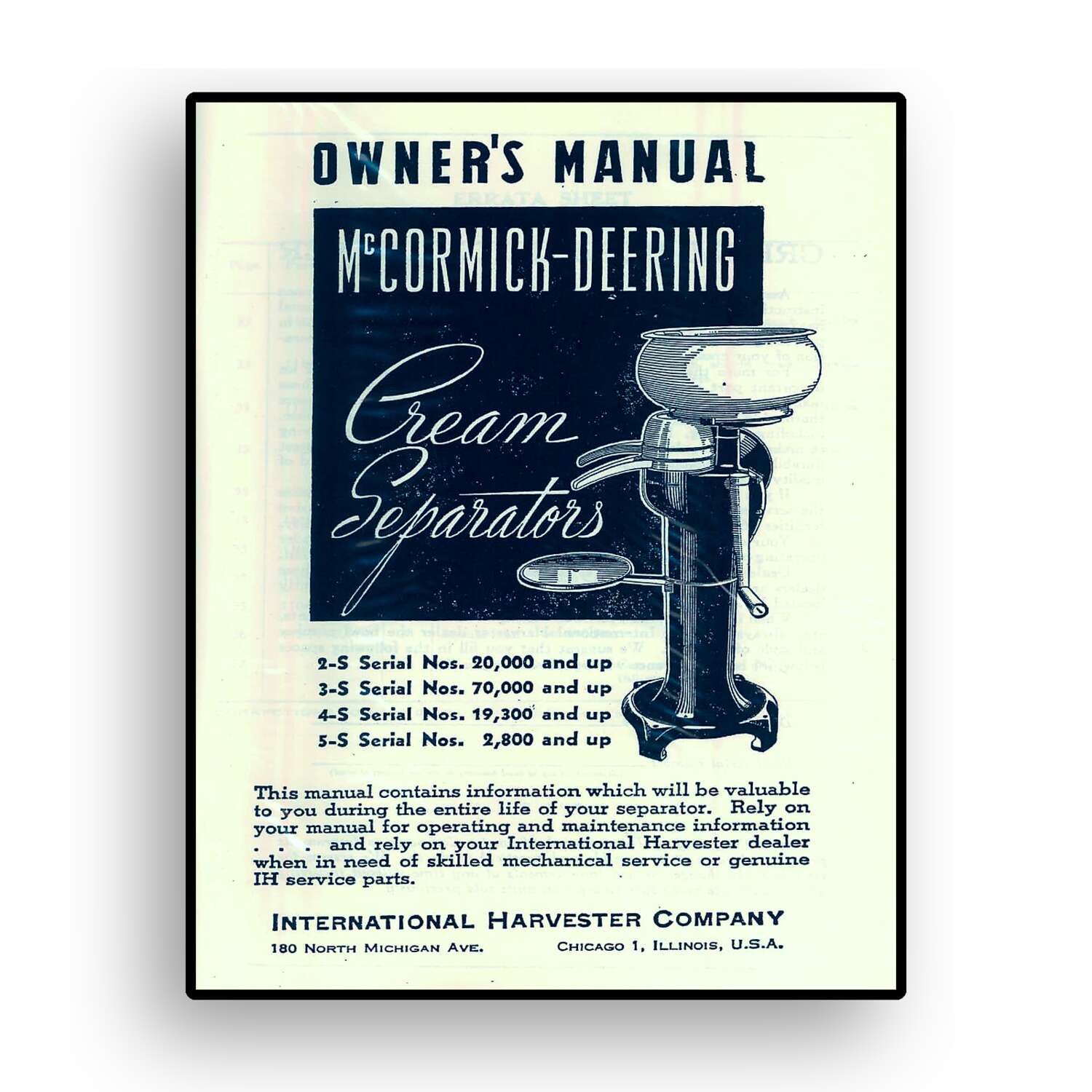 Owners Manual for McCormick-Deering No. 2S, 3S, 4S, 5S Cream Separators