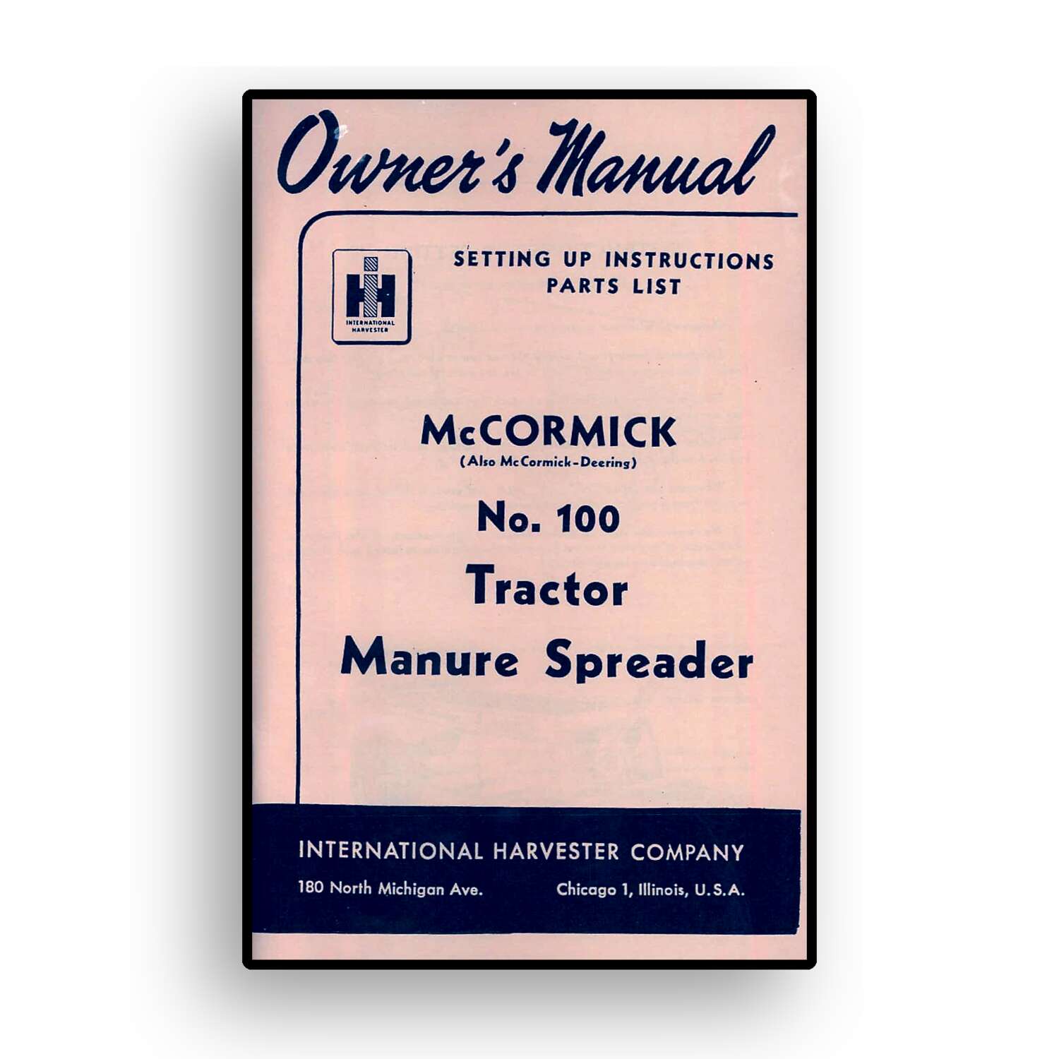 Owners Manual for McCormick No. 100 Tractor Manure Spreader