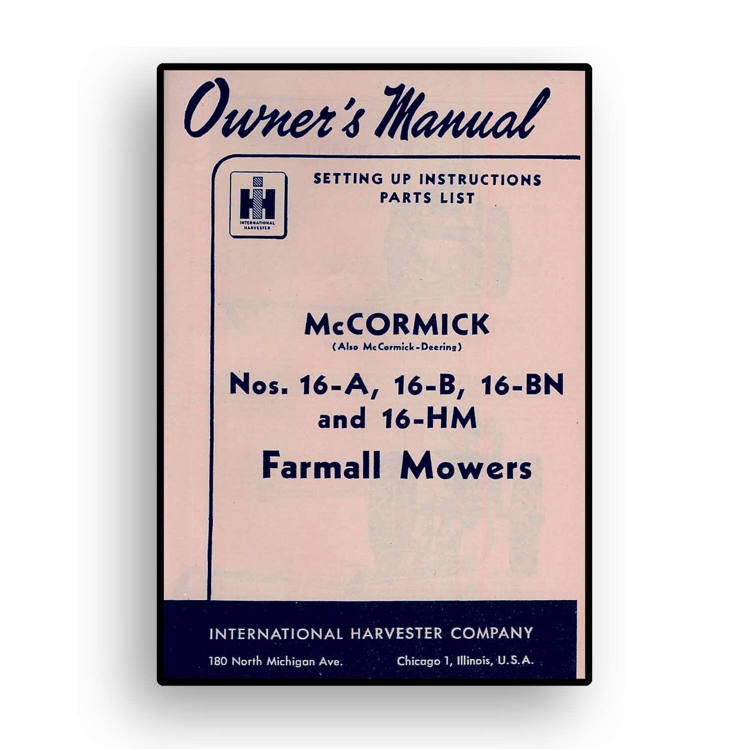 Owners Manual for McCormick No. 16-A, 16-B, 16-BN & 16-HM Farmall Mowers