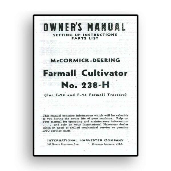 Owners Manual for No. 238-H McCormick-Deering Farmall Cultivator