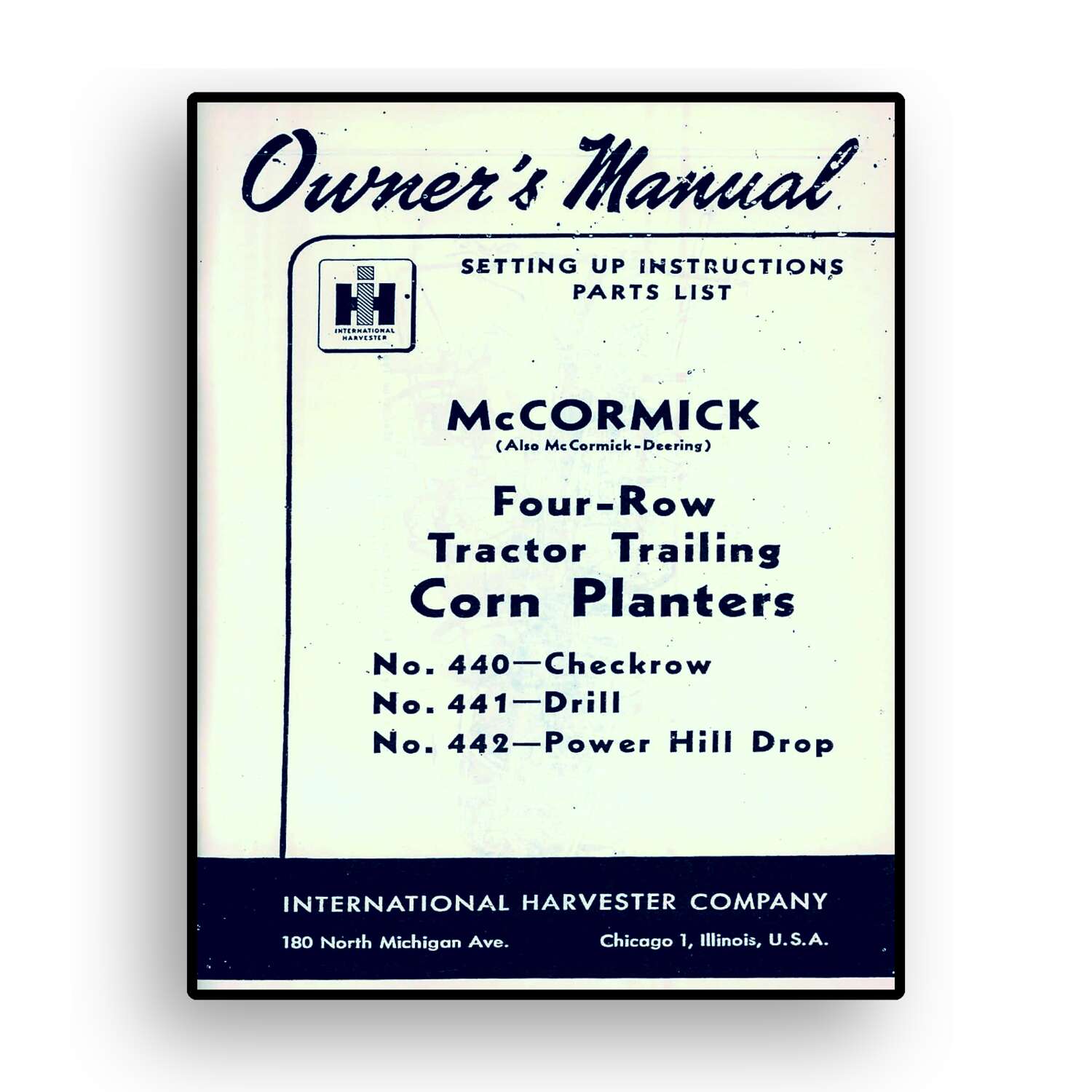 Unlock the Secrets of Vintage Farming: Owners Manual for No. 440, 441, & 442 McCormick Four-Row Tractor Trailing Corn Planters