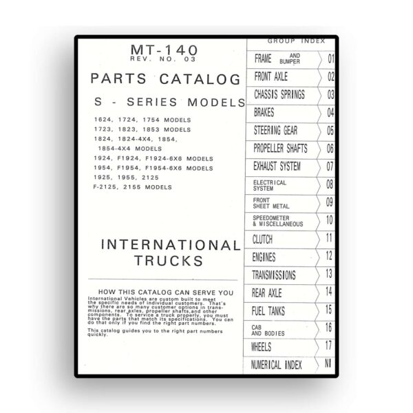 Step into the world of vintage machinery restoration with the MT-140 Parts Catalog for 1989 & Prior International S-Series Medium Duty Trucks. This meticulously curated catalog is not just a collection of parts; it’s a treasure trove of technical significance that serves as a vital resource for restoration mechanics, vintage enthusiasts, and anyone looking to breathe new life into classic trucks. Whether you’re a seasoned restorer or just starting your journey, the MT-140 is a must-have for anyone passionate about preserving the rich legacy of the International S-Series.