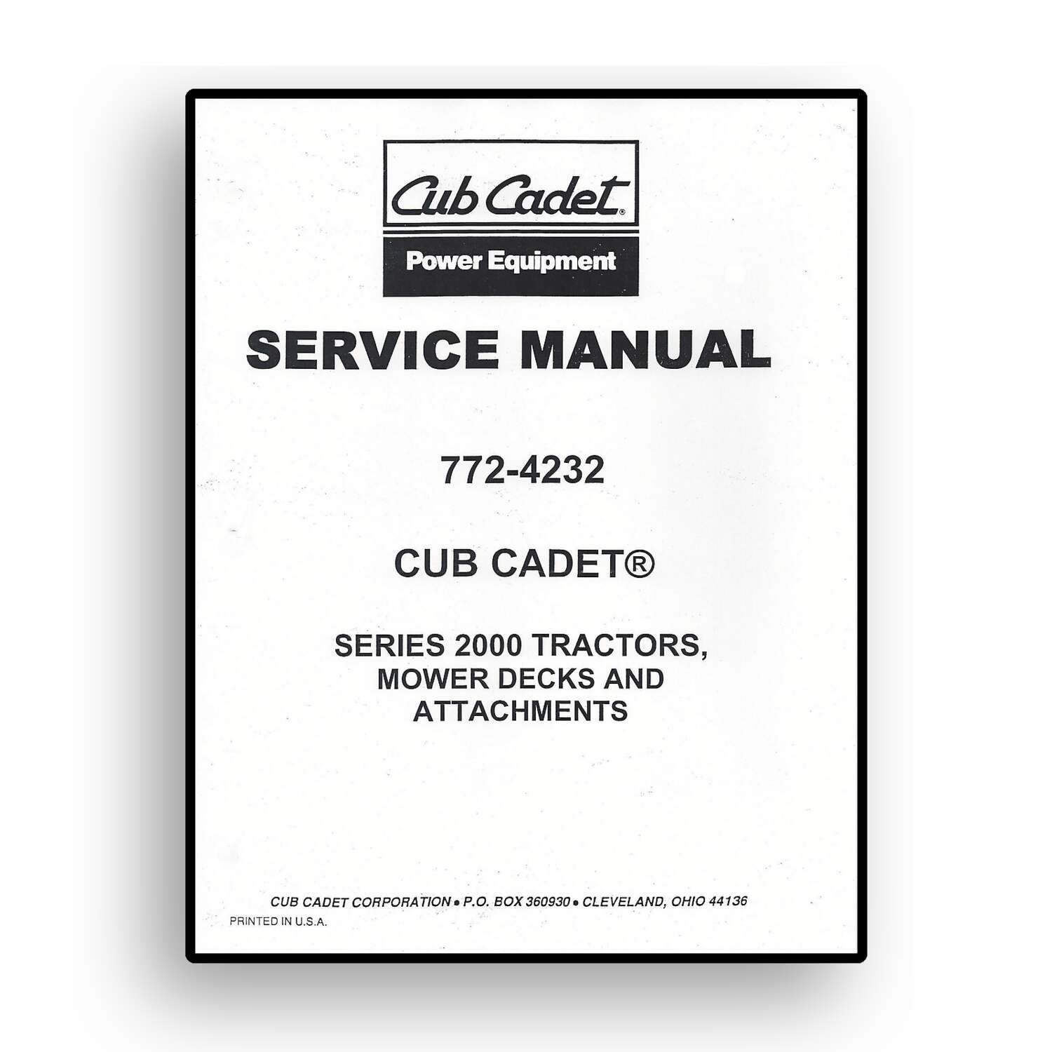 Service Manual for Cub Cadet Series 2000 Tractors, Mower Decks & Attachments