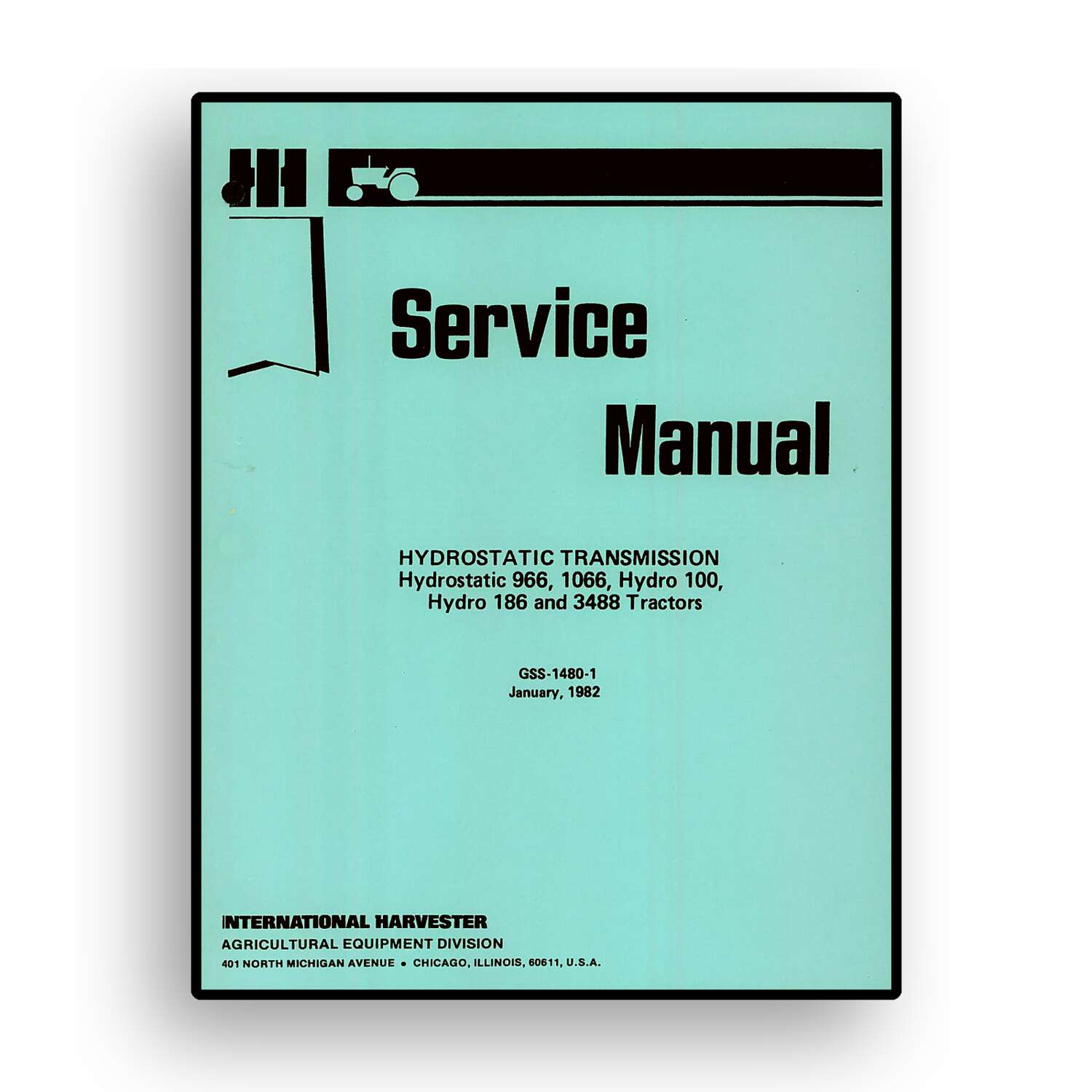 Service Manual for Hydrostatic Transmission for 966, 1066, Hydro 100, Hydro 186 and 3488 Tractors