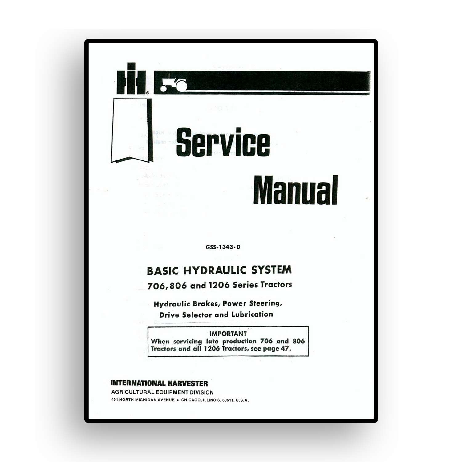 Service Manual for IH Basic Hydraulic System for 706, 806 and 1206 Tractors